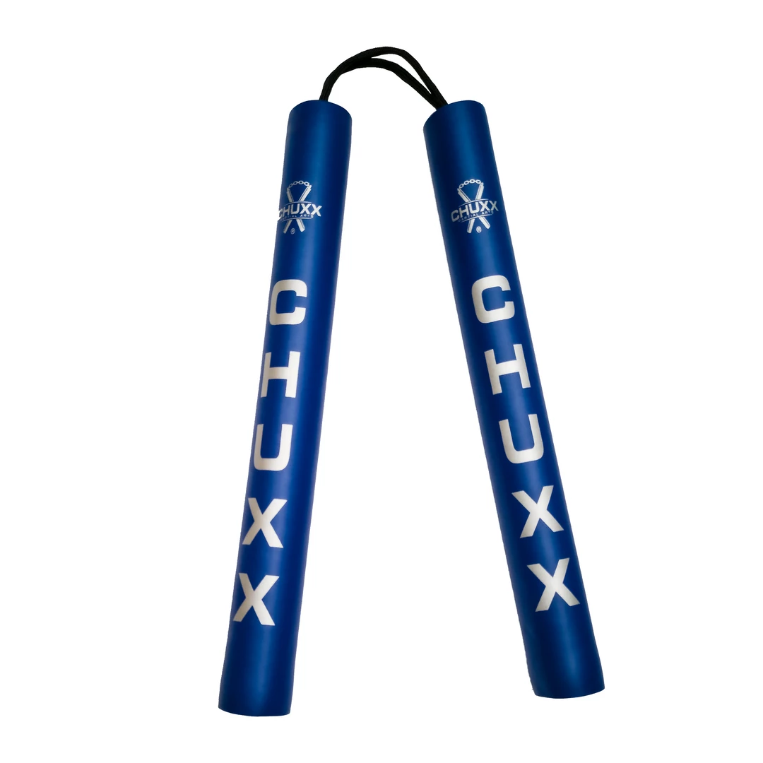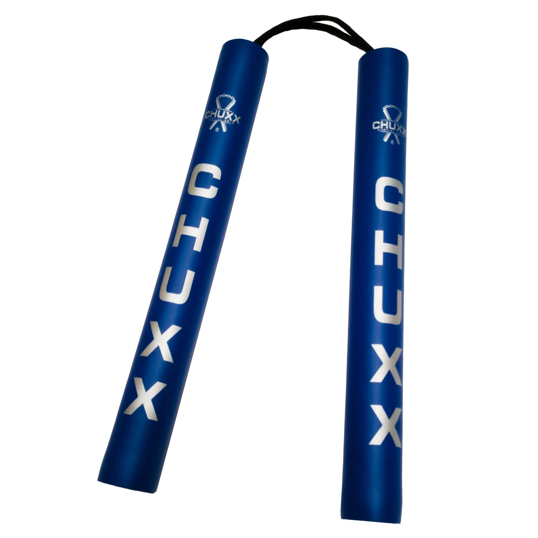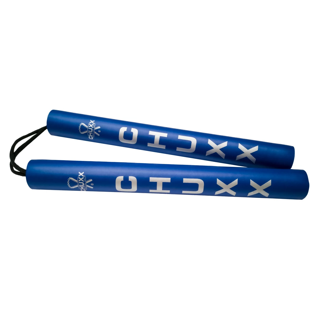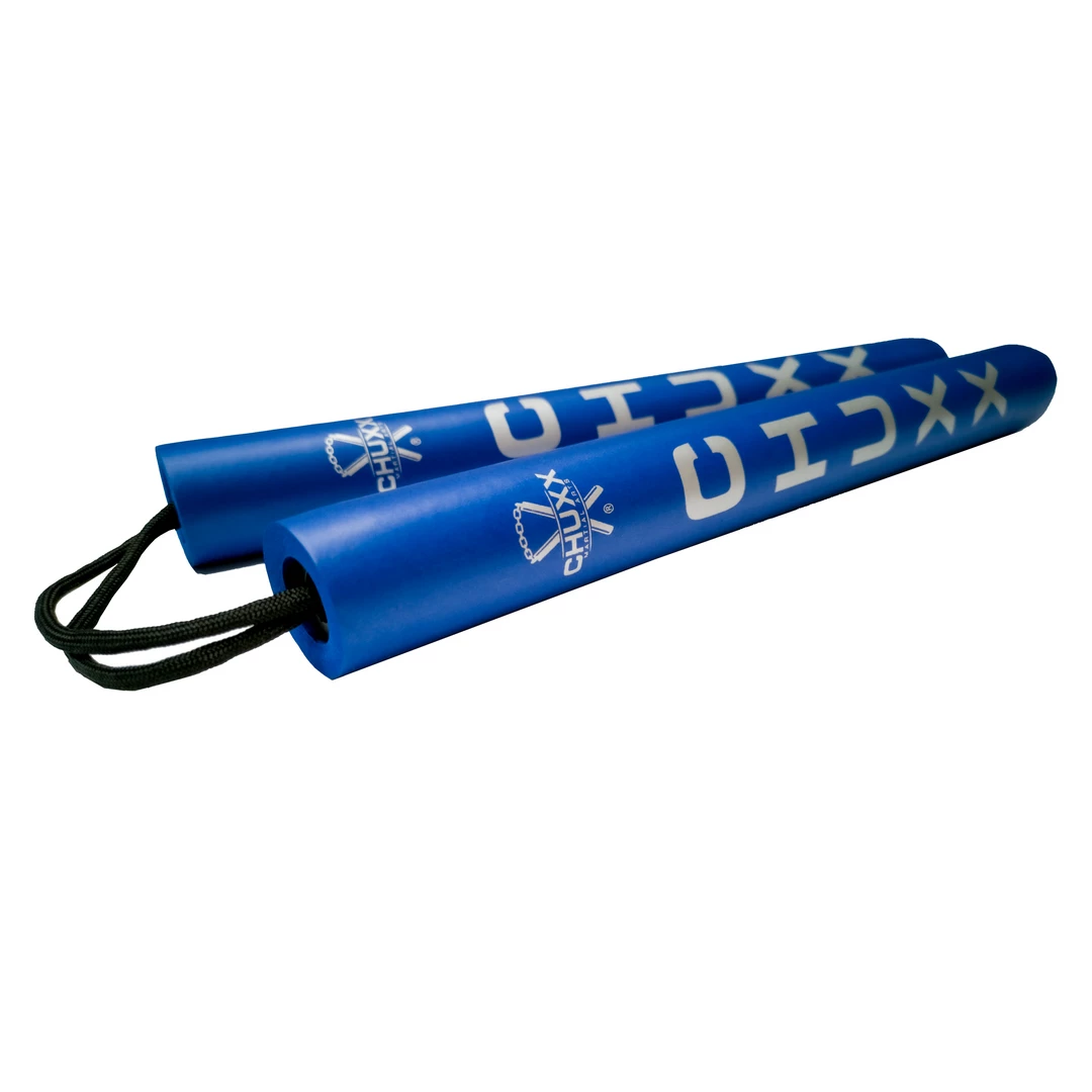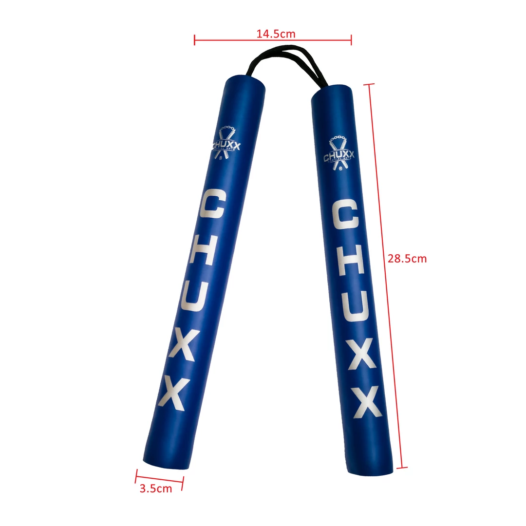 - PREMIUMÂ BLUEÂ CORDED FOAM NUNCHUCKS – Ideal for kids, beginners, or adult practice. The deep foam rubber helps cushion impacts, protecting you from injury whilst practising your kata or self-defence. These nunchucks are light to help minimise risk of injury to yourself or others. They are light enough to be safely used by children as a toy or ninja dress-up accessory.