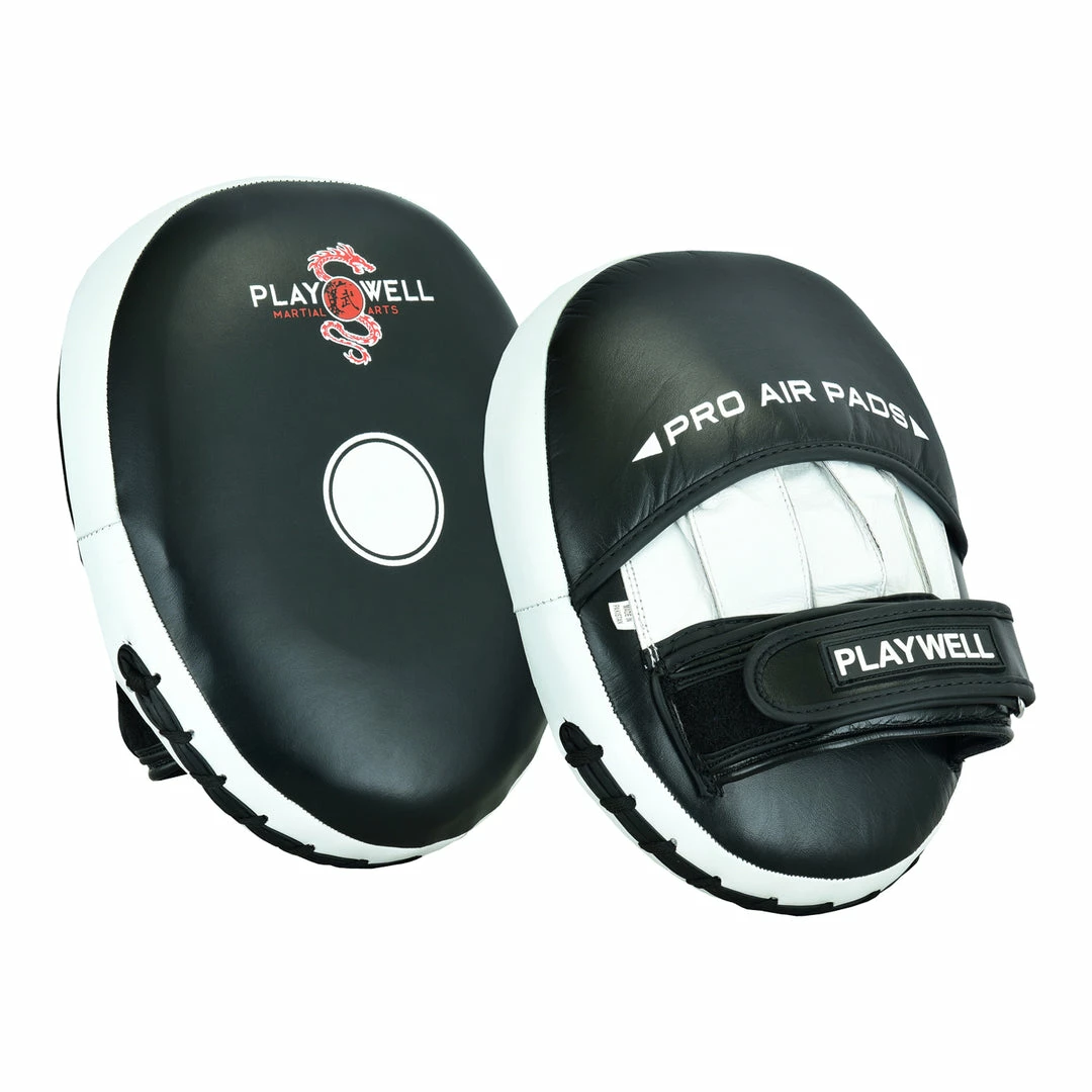 These revolutionary air pads were developed to take the impact out of the punch. Constructed with premium quality leather and resilient double stitched seams, these pads provide optimal levels of comfort and durability. Precise control is attributed to the moulded centre palm ball and adjustable fastening strap. Multi-layered foam layers allow for high levels of shock absorption, which along with the concave centre target area, lead to unparalleled comfort, protection and power diffusion.