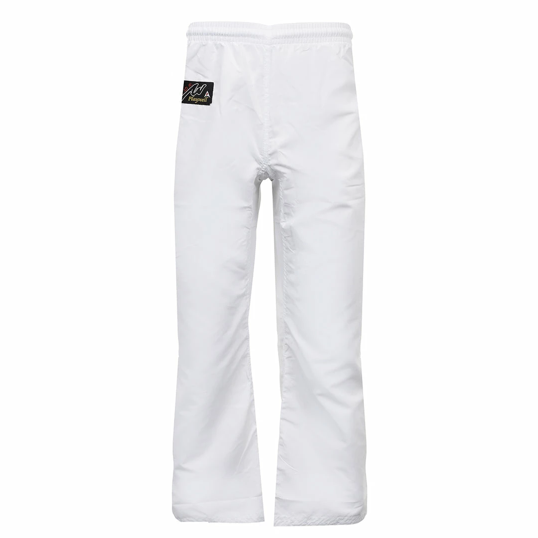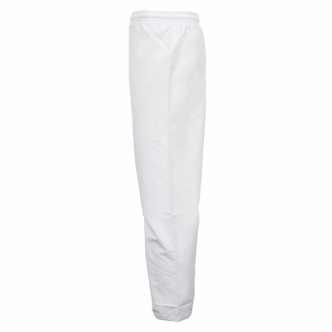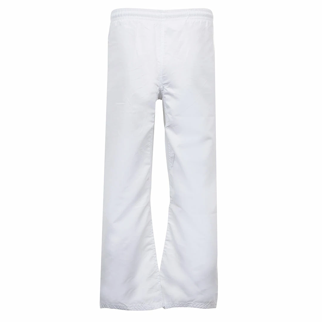 Newly Constructed With the The Latest Technoloy. These Martial Arts Trousers are All White in colour, Made of Microfibre, the lightest Weight Trousers Available in the market yet mainting high quality Standards. Excellent Soft Exterior, Extremely Comfortable to Wear. Elasticated Waist Band