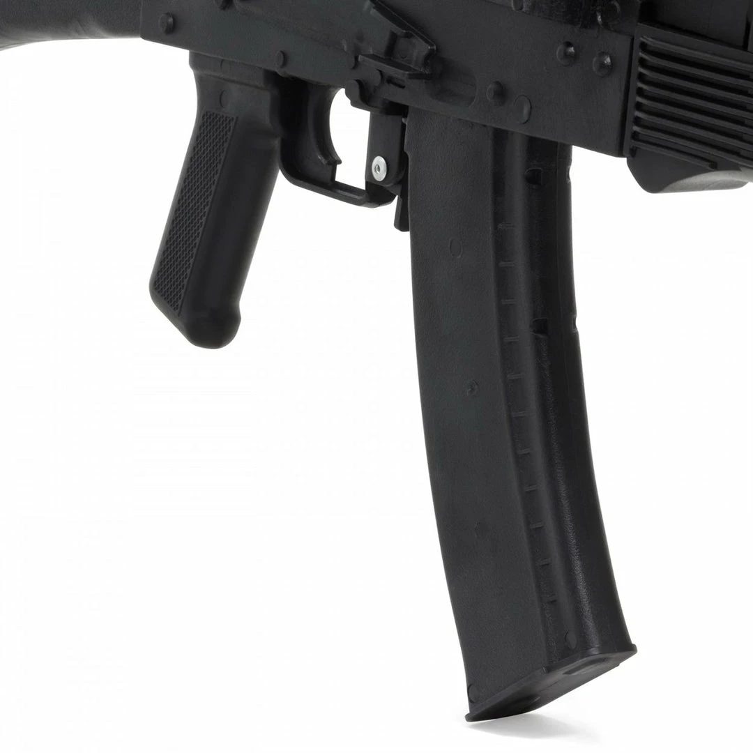 Black rubber TPR AK47 replica with mock trigger & Removable magazine. Realistic design by Playwell for use and training in method of non-deadly force.