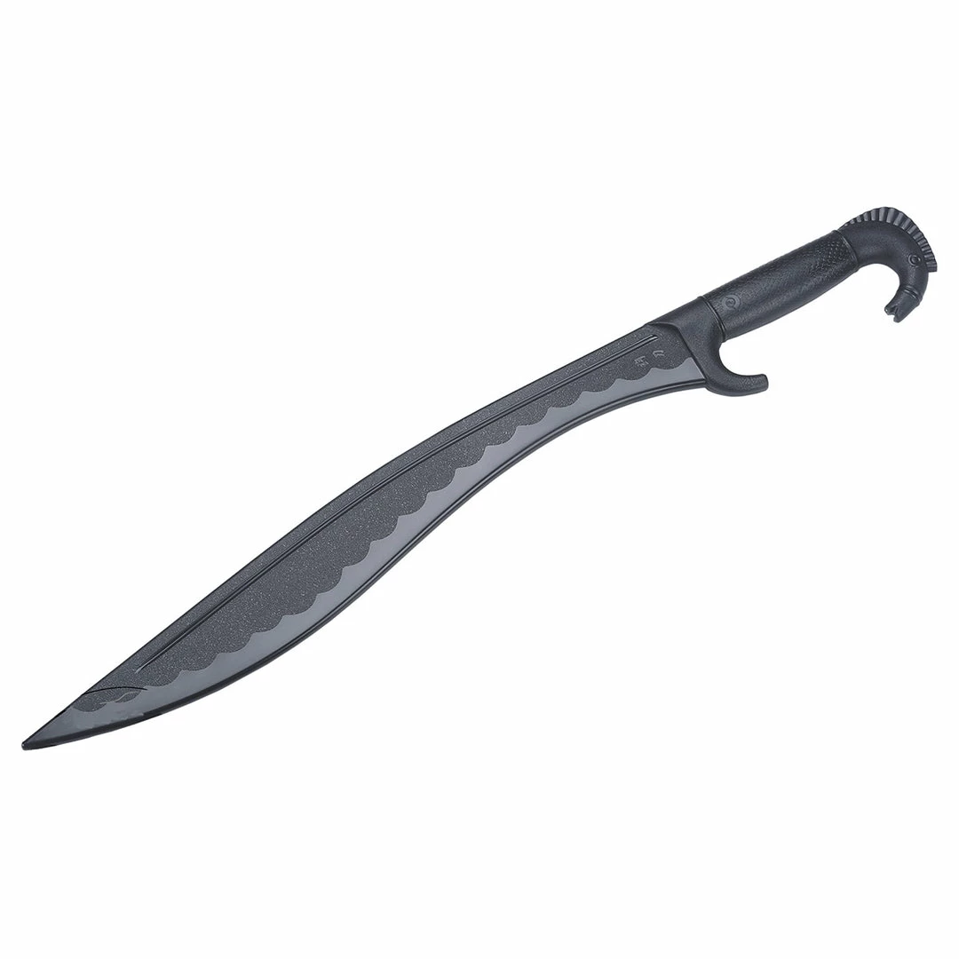 The falcata is a type of sword typical of pre-Roman Iberia. The falcata was used to great effect for warfare in the ancient Iberian peninsula, and is firmly associated with the southern Iberian tribes, among other ancient peoples of Hispania. It was highly prized by the ancient general Hannibal, who equipped Carthaginian troops with it during the Second Punic War. Made from Polypropylene Material Much stronger & Durable then Wooden Or Metal Weapons, Lightweight Yet Sturdy. Polypropylene Is virtually A unbreakable Material Which Makes These Training Weapons The Best Available they have the advantages of being virtually unbreakable and remarkably stiff and cut resistant. Measurements : Overall Length – 64.5cm Weight : 305g
