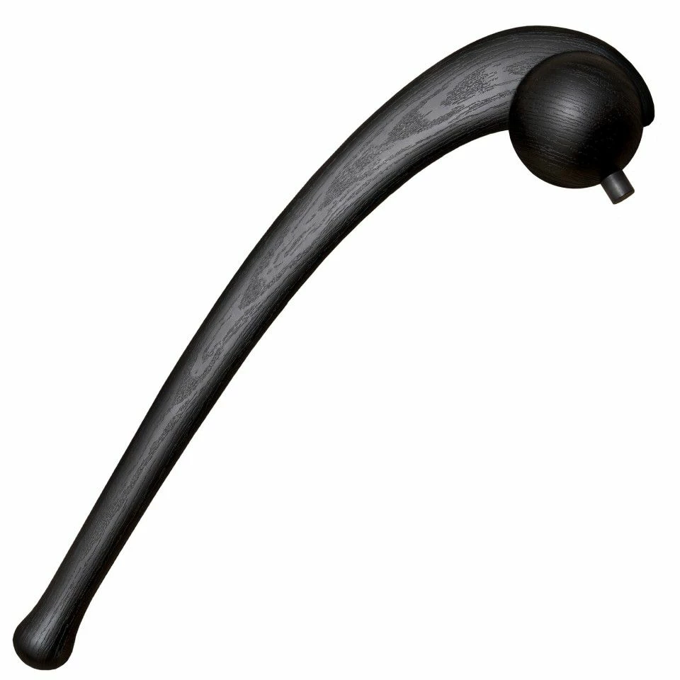 Our version is approximately 2 ft. long and features a 3 1/4” in diameter ball. It is fitted with a removable blunt, short steel spike. Hornbeam is scarce and not readily available in commercial quantities, so our club is injection molded out of black Polypropylene which is practically unbreakable. It will never rot, crack warp, splinter, swell, shrink mildew, or fade. For historical re-enactors the surface has a realistic wood grain finish that can be easily customized with paint and can be ornamented with brass studs, tacks, or feathers.