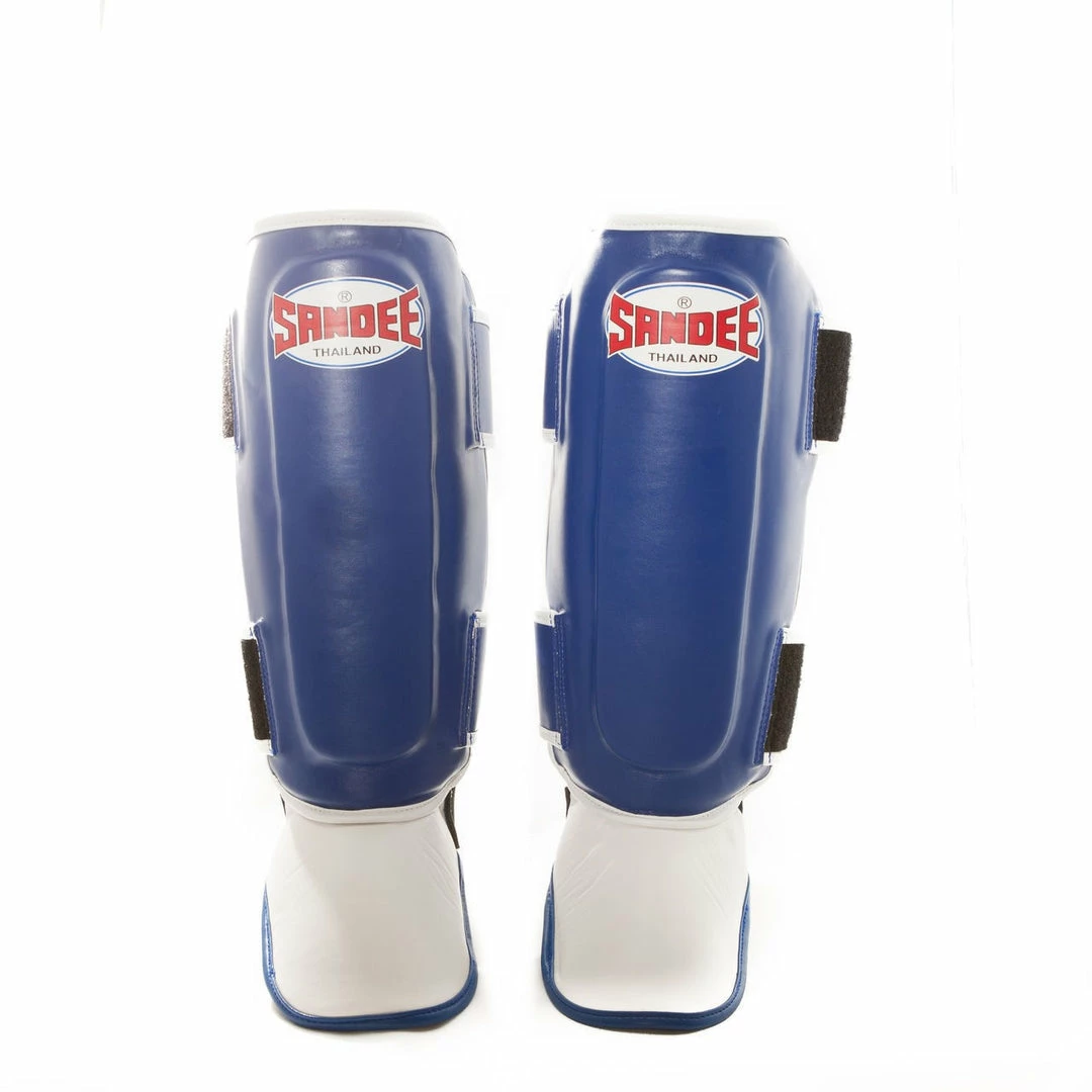 Sandee Authentic Muay Thai Shin Pads Blue Constructed of premium grade synthetic leather outer shell with triple layer of contoured high-density latex foam inner-core system