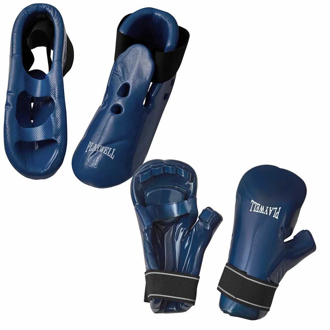Dipped Foam Sparring sET with Single Layer Protection. Sweat Holes for Ventilation. Colour is Blue. With Velcro Strap for secure fit. Offers Excellent Protection and Safety. Easy To Put on And Remove. Sold In Pairs