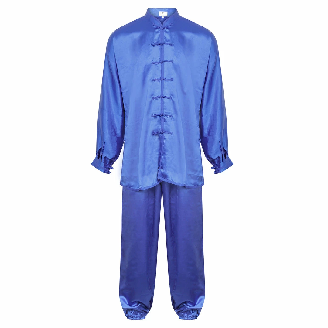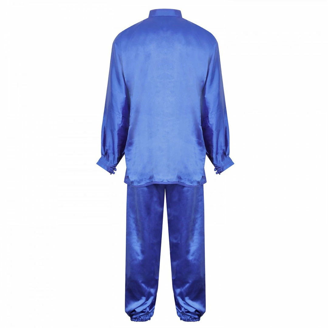 Tai Chi Silk Uniform – Blue – Made of 100% Genuine Silk. long sleeve uniform features frog buttons and mandarin collar. Pants have elastic waist and ankles. Loosefitting, Lightweight, Cool And comfortable.