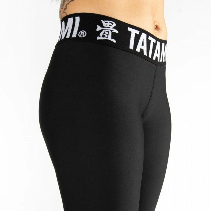 The 2018 Spring Summer Collection from Tatami Fightwear introduces the Ladies Black Minimal Collection, a set of comfortable, practical ladies training wear. The Tatami Fightwear minimal Spats offers a suitable training solution for ladies. Jaquard underband Compression fit Non-sublimated Non-transparent Plain and Minimal Breathable side vent