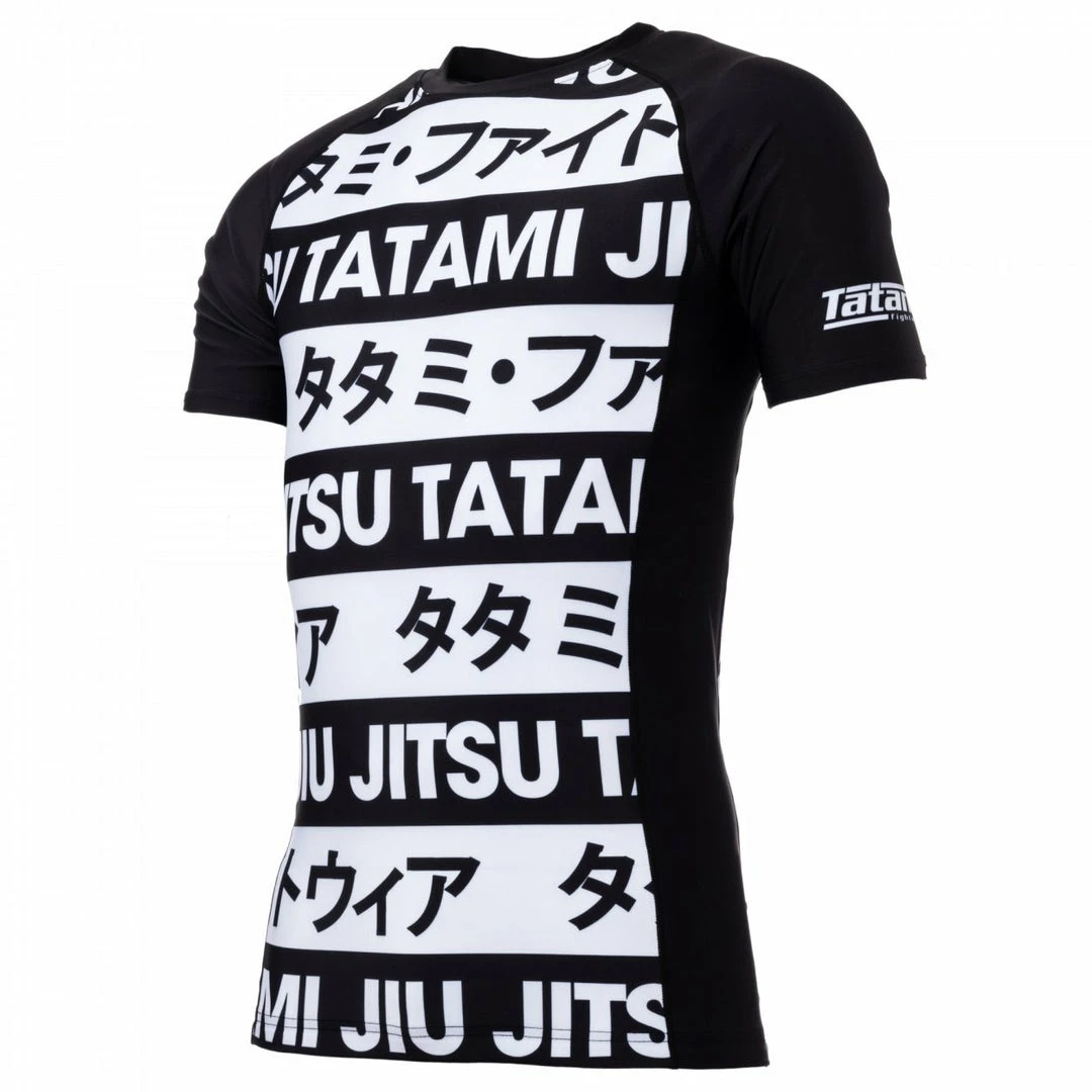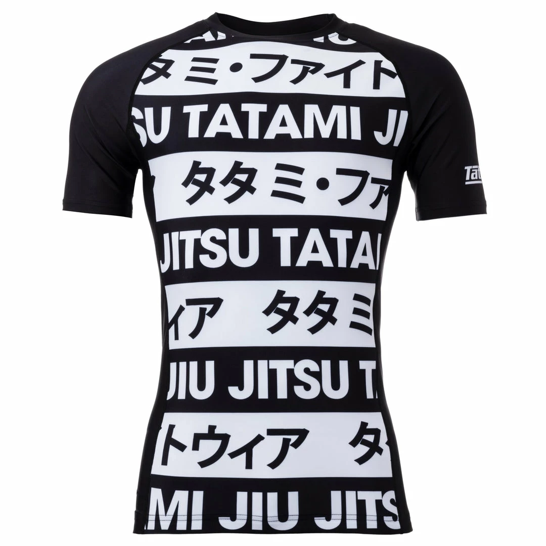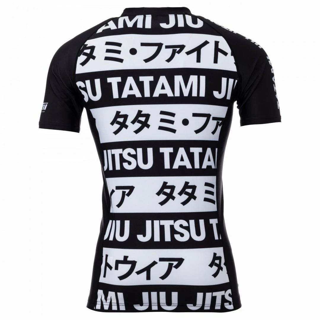 The Banned collection features a design of interlocking black and white stripes, with Tatami and Katakana logos, creating an awesome effect. This rash guard comes in short sleeve.