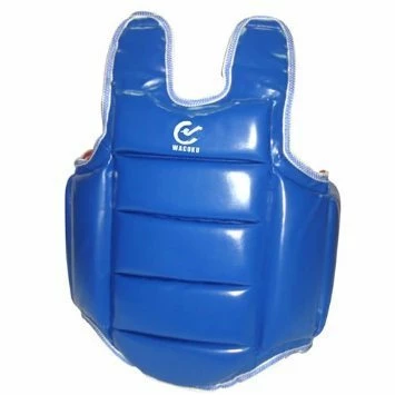 Wacoku Brand Karate competition style armour For Competition Use, Professional Quality Karate Chest Guard. Reversible. Covers the sternum, solar plexus and ribs. Cross tape nylon straps with velcro fasteners. Colour is Reversible , One side red , One side blue