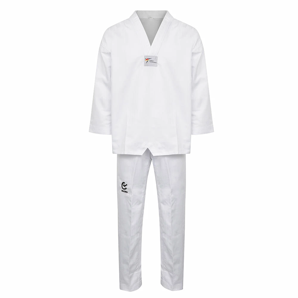 The WTF Approved Gi is made up of 80% Polyester 20% Cotton ribbed material, the Dobok is designed to feel light and flexible giving you zero restriction when training and competing, while being simultaneously durable. A soft spandex band is incorporated in the waist section for extra flexibility and comfort.