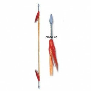 Traditional designed light weight steel ornament. Made of metal with Double Halberd Spear and And a pounted Spaear End At the bootom of the staff. Overall structure is heavy metal weighing 3 lbs. Total length measures 80 Inches “.