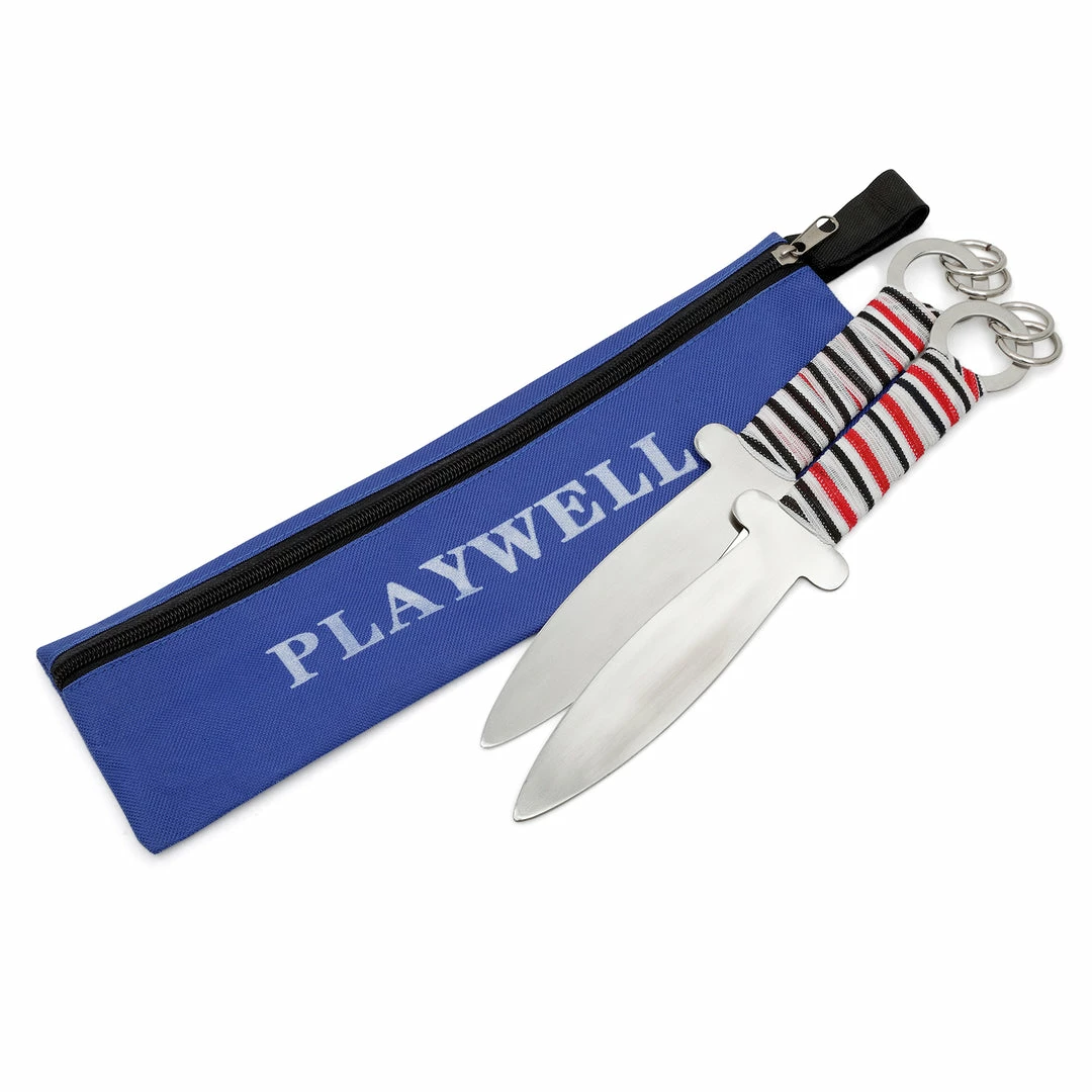Traditional chinese ring daggers, made from rigid steel and bounded handles, total length of each dagger from top of ring to the tip is 32cm,